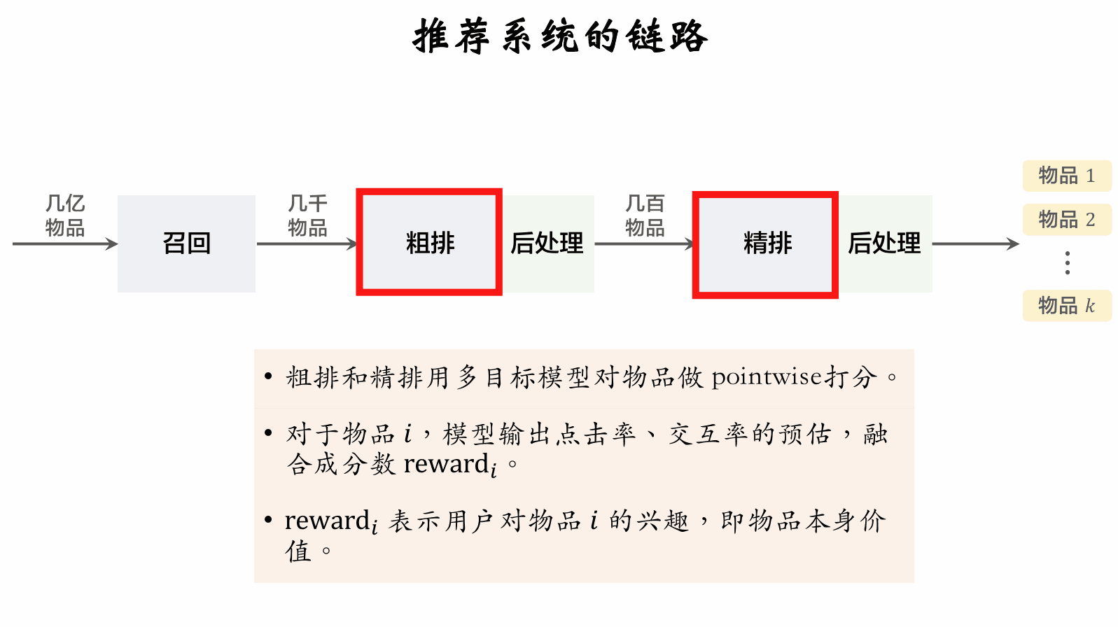 • 精排给 nn 个物品打分:reward1,,rewardn\text{reward}_1, \cdots, \text{reward}_n