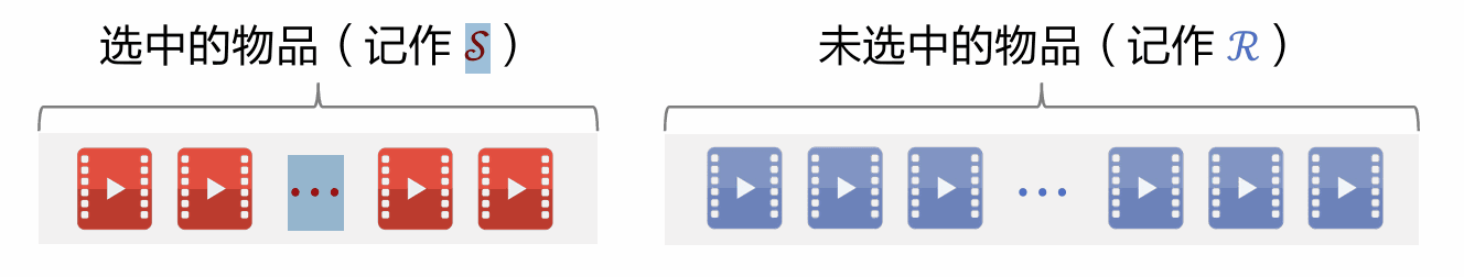2. 选择精排分数 rewardi\text{reward}_i 最高的物品,从集合 R\mathcal{R} 移到 S\mathcal{S}